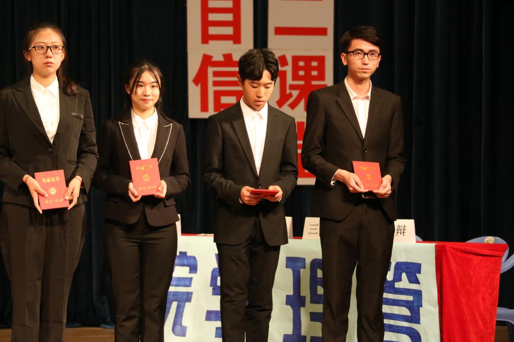 19时许,比赛正式开始,我方一辩紧抓辩题,开宗明义,明确文化自信的定义,阐述了第一课堂与第二课堂的不同。我方一辩从第一课堂与第二课堂相比,第一课堂教学更具全面性;第一课堂授课更具系统性;在培养大学生文化自信时,第一课堂具有长久性三个方面展开论述。反方则从树立文化自信出发,提出第二课堂可以促进校园精神文明的建设等观点。双方辩手,沉着冷静,逻辑清晰,言辞犀利,把比赛渐渐推向了高潮。在对辩环节 ,我方提出知识是实践的前提,第一课堂也是第二课堂的基础。反方则以知行合一进行反击。在随后的盘问环节中,双方辩手也都见招拆招、无往不利。反方指出第二课堂可以使当代大学生真正做到知行合一,树立文化自信。而我方则指出知是行的基础,知识的充分积累才会使实践成为现实。在最紧张刺激的自由辩环节中,双方你来我往,使出浑身解数,就辩题展开火花四溅的论述,可谓是“一言之辩,重于九鼎之宝;三寸之舌,强于百万雄狮”。在最后的总结陈词环节,双方四辩指出了对方的漏洞加以反搏并且重申己方观点并以简洁深刻的语言总结陈词。比赛结束后,陈彦超老师为本次辩论赛进行精彩点评同时对双方辩手的精彩辩论给予赞赏,并指出双方亮点,但同时也指出双方存在的问题与漏洞且进行改正。最终,经过现场评委的打分投票,我院38365365荣获本次辩论赛决赛冠军。